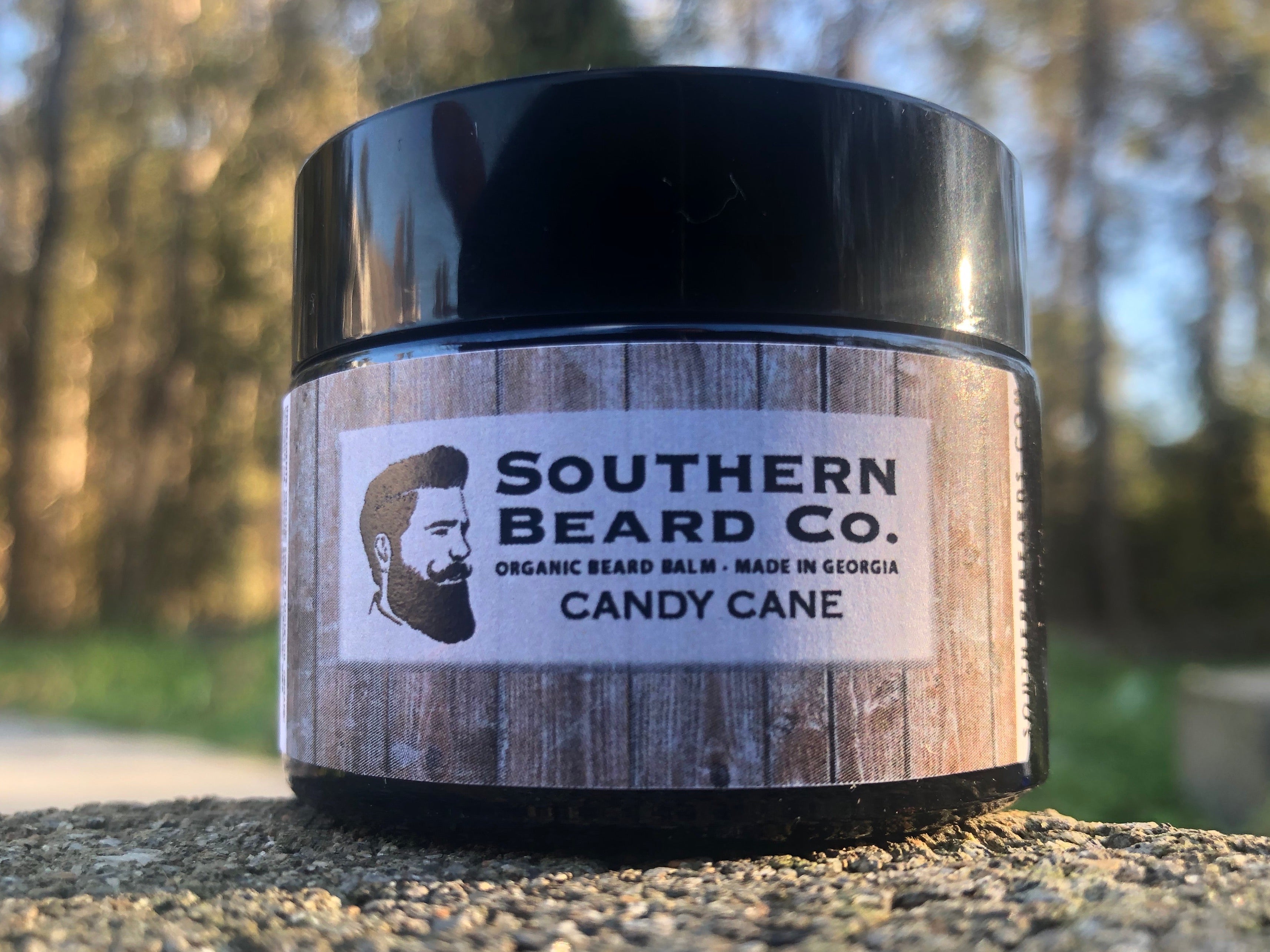 Southern Beard Co.'s Candy Cane Organic Beard Balm is the vintage mint holiday scent that is sure to bring out the holiday cheer in any man! Boasting the fresh, unmistakable scent of the classic holiday treat, this scent will bring the holidays right to you all day long. This beard balm's holiday scent will make your beard feel and smell amazing all day long.